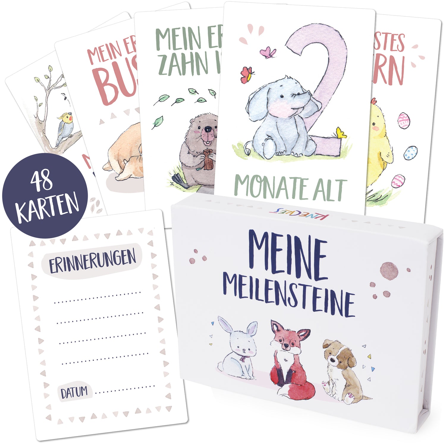 KNECKES 48 hochwertige Baby Meilensteinkarten inkl. schöner Geschenkbox