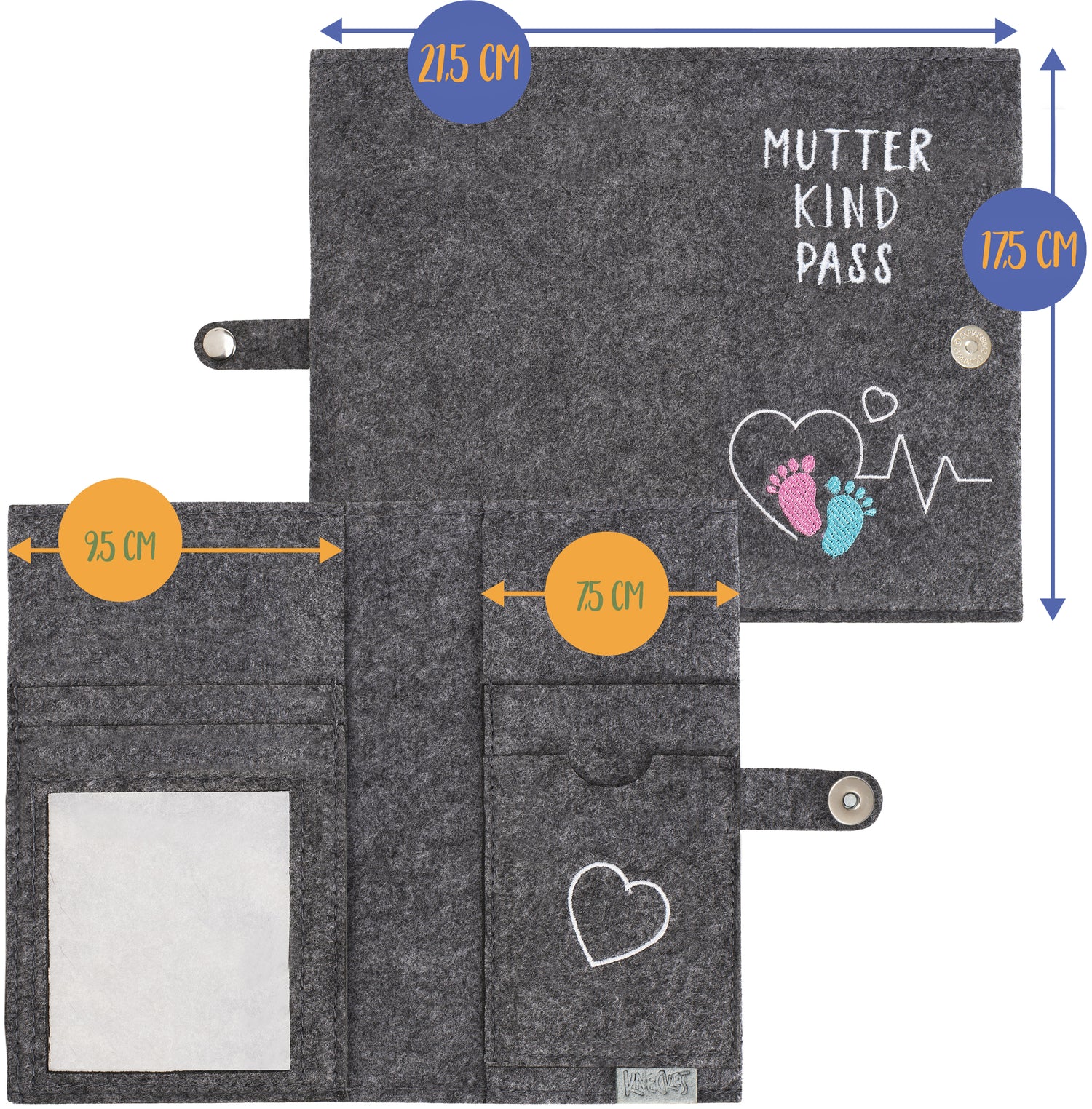(AT) KNECKES – Edle Mutter-Kind-Pass-Hülle Filzdesign (grau) für Österreich | mit vielen Fächern für Ultraschallbild, Versichertenkarte, Impfpass etc. | tolles Geschenk