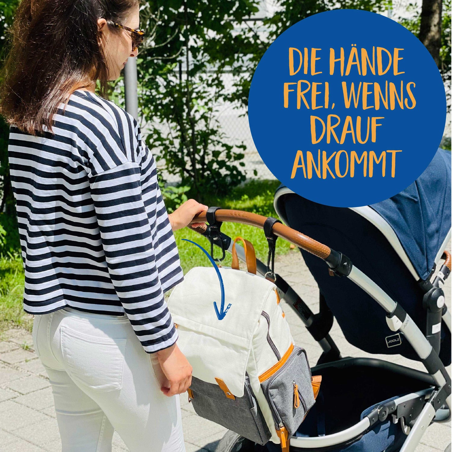 - EINSATZZWECK – Einfache Installation da Klettverschlusssystem | Eignung Kinderwagen-griff sowie jegliche Stangen oder Griffe | passend für fast alle gängigen Kinderwagenmodelle | Zum Aufhängen von Wickeltaschen / Wickelrucksack, Rucksack Einkaufstaschen, Handtaschen, Spielzeug, Schultaschen, Lunchpakete, Mäntel usw.