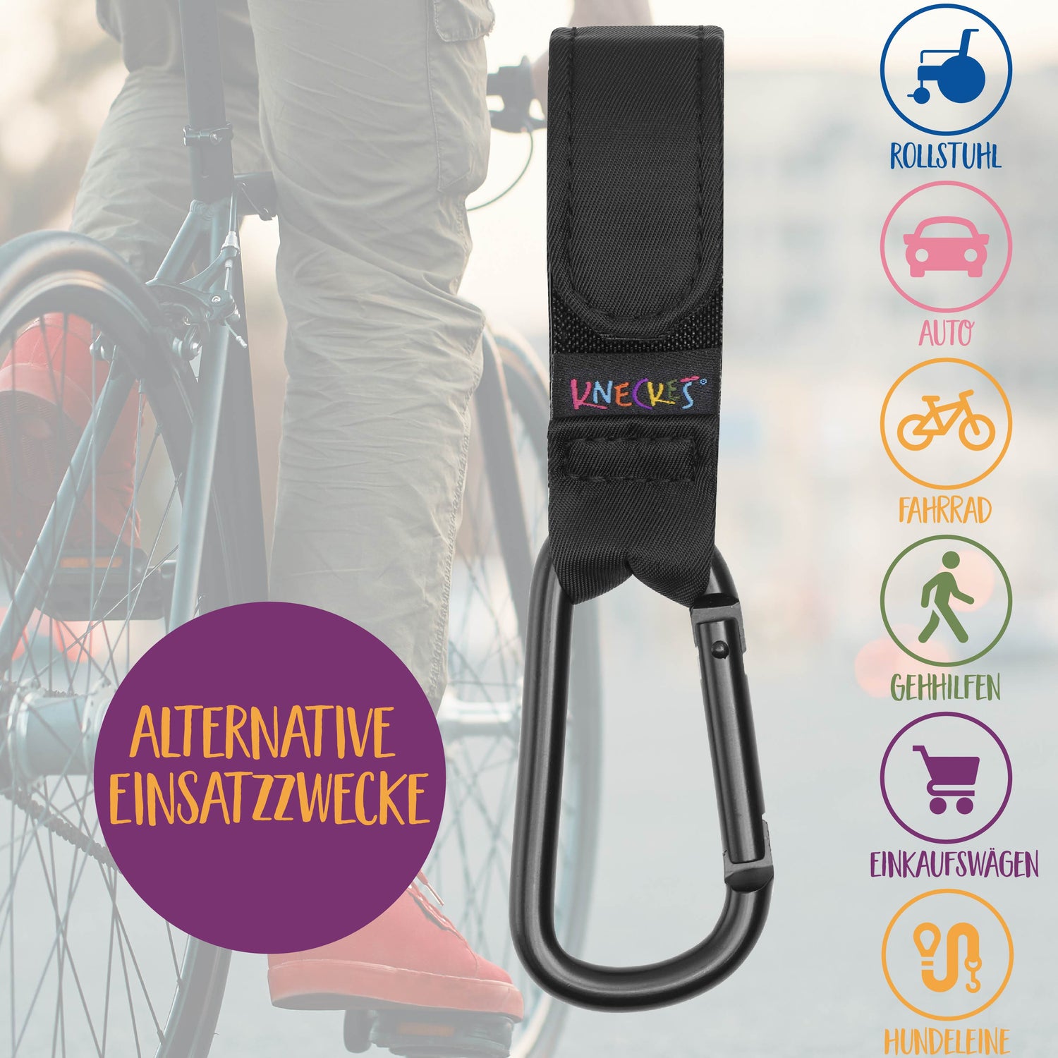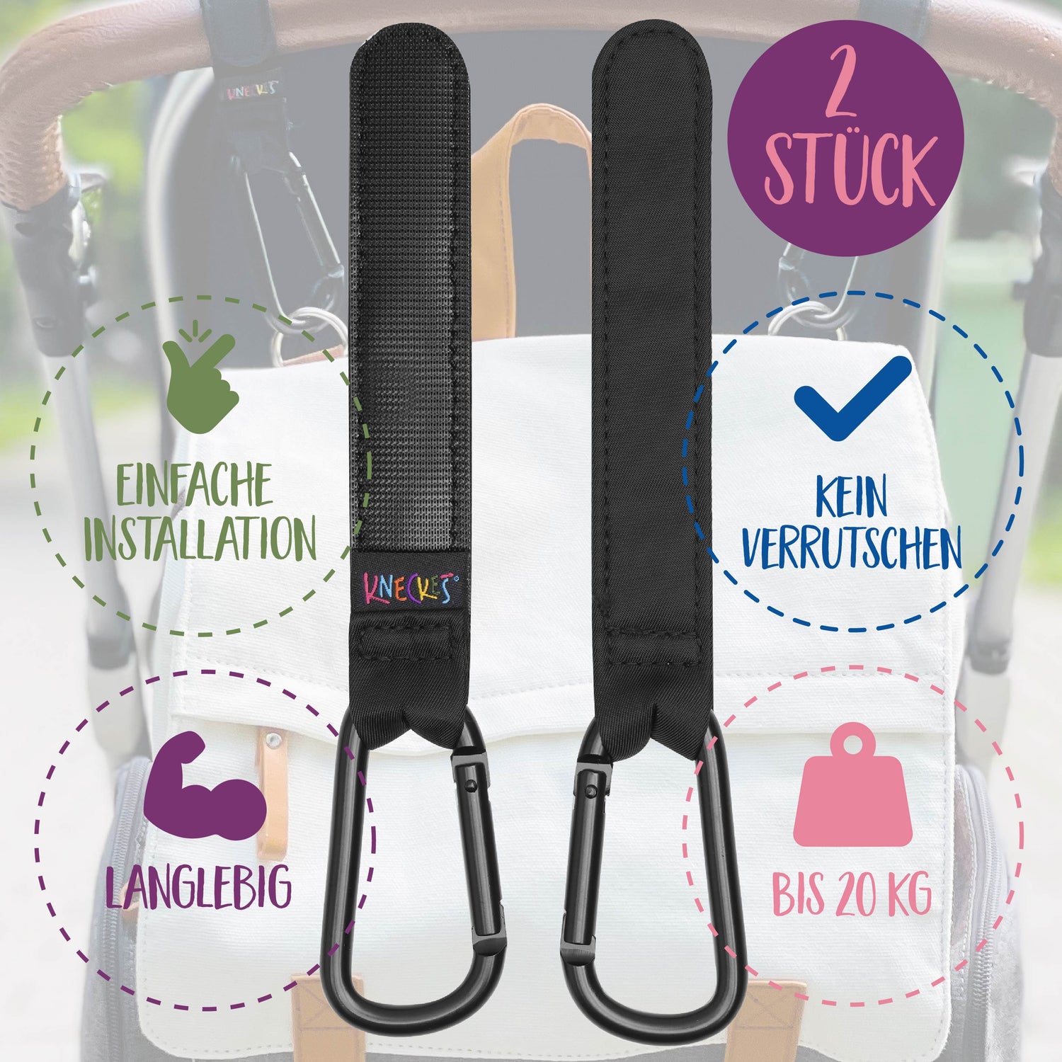 KNECKES Stabiler Kinderwagenhaken/Stroller Hooks (2er Set Tragkraft 40 kg) Klettverschluss