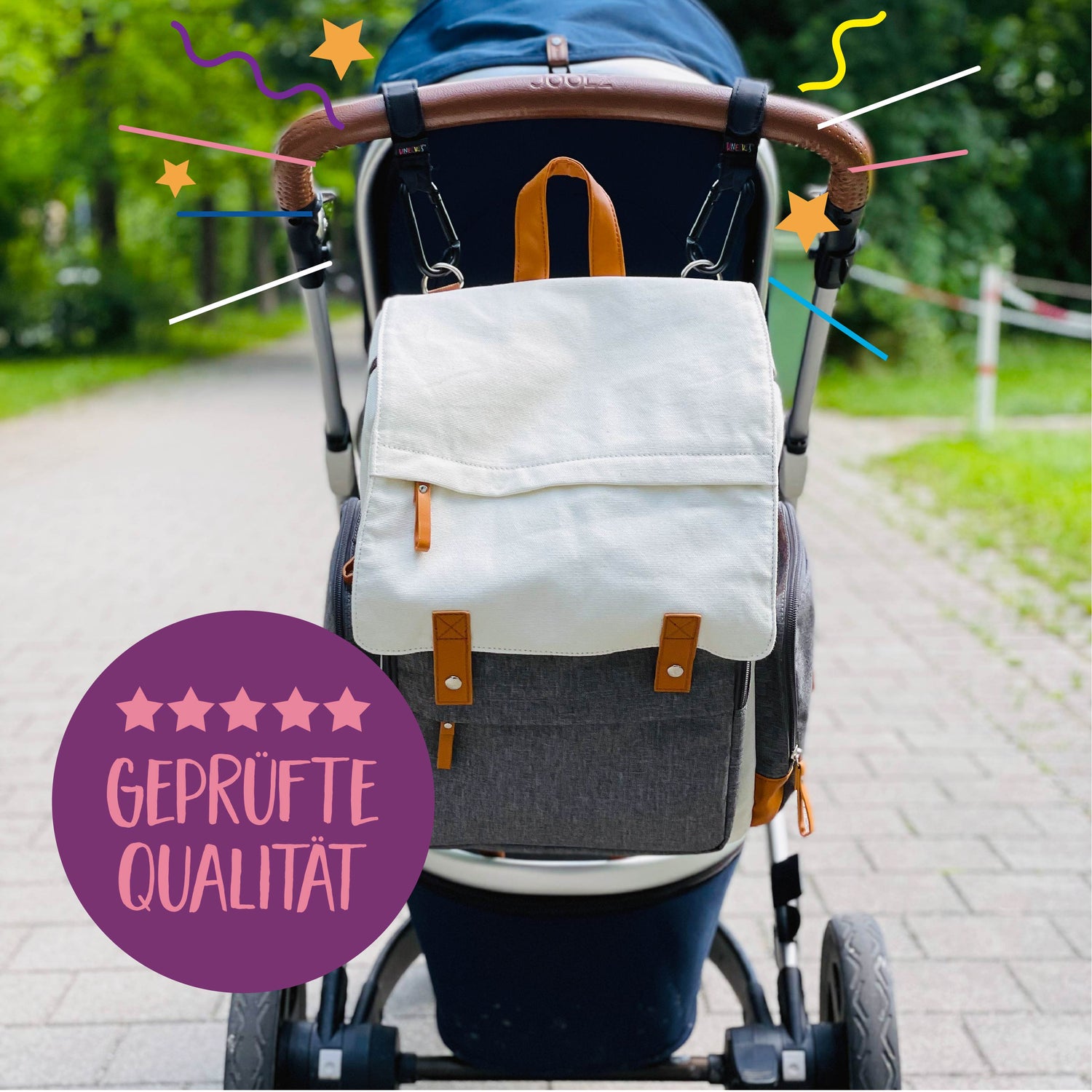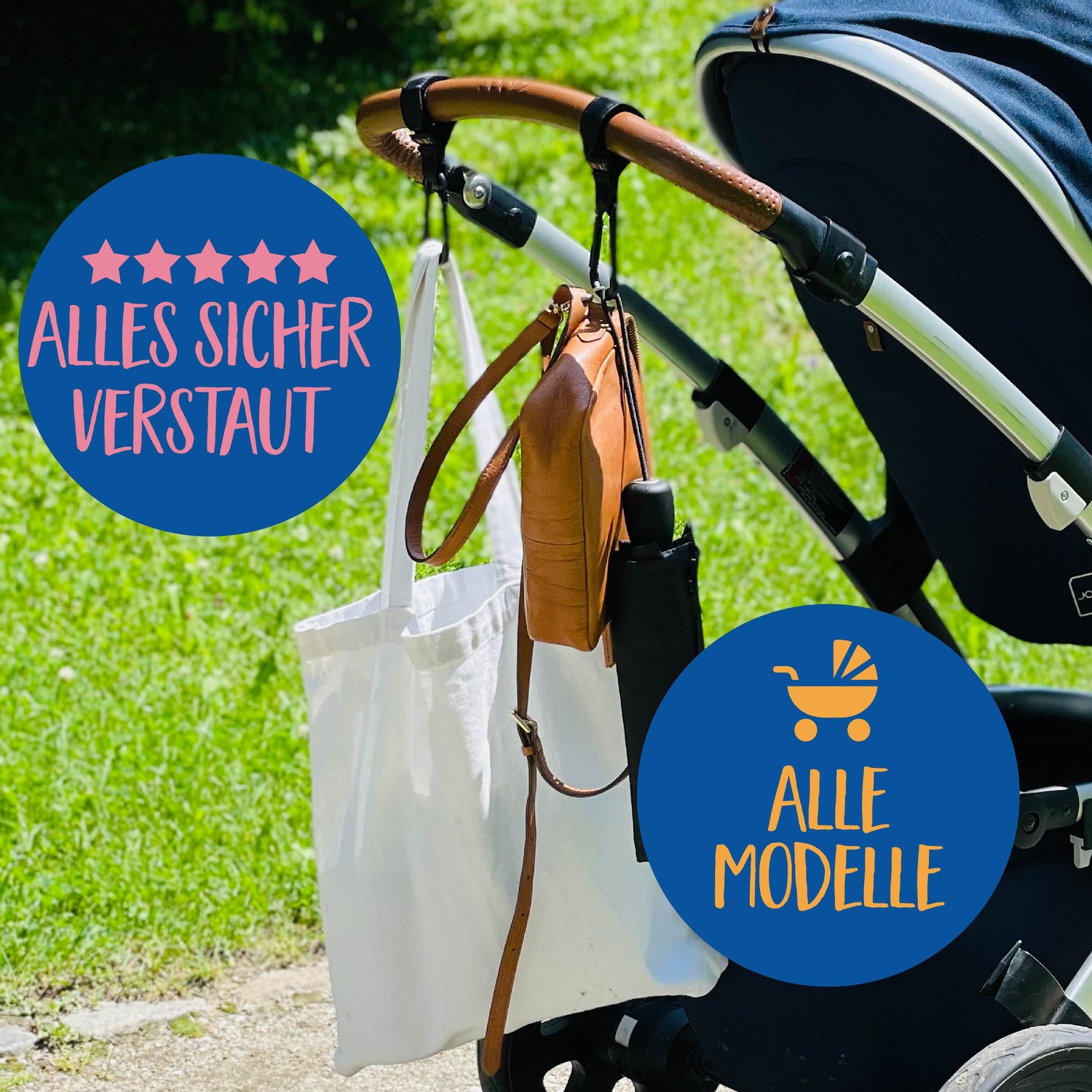- LIEFERUMFANG - ✔️ 2 x Kinderwagenhaken mit Klettverschluss in edlem Design